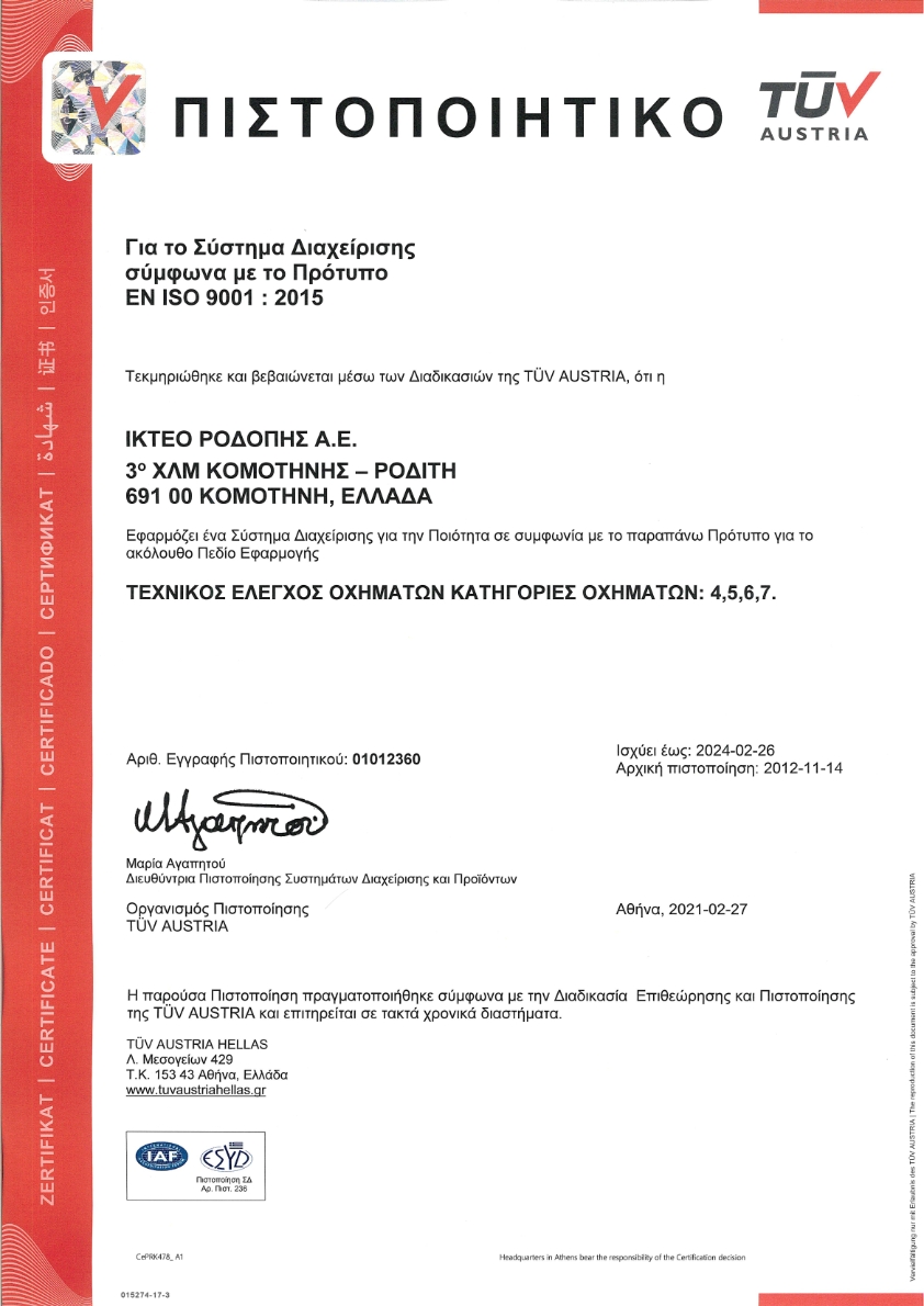 Το Ι.ΚΤΕΟ Ροδόπης είναι μια σύγχρονη, δυναμική εταιρία που ιδρύθηκε με σκοπό να παρέχει ένα ευρύ φάσμα υπηρεσιών υψηλού επιπέδου. Το ασυναγώνιστο πλεονέκτημά μας, είναι η συνεχής βελτίωση των υπηρεσιών μας και η απόλυτη δέσμευση διασφάλισης έγκυρου και ποιοτικού ελέγχου. Επίσης δημιουργήσαμε για εσάς έναν ευχάριστο χώρο αναμονής παρέχοντάς σας δωρεάν ροφήματα, wi-fi και έντυπο ενημερωτικό υλικό.